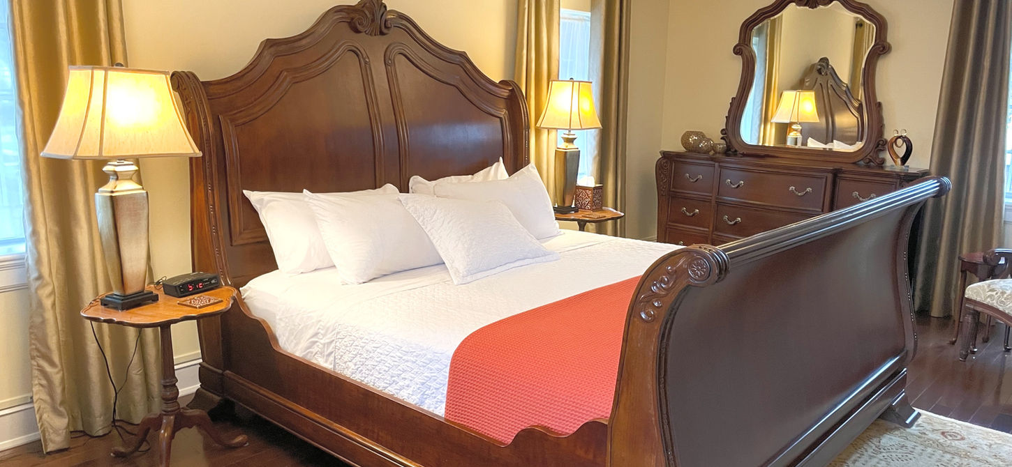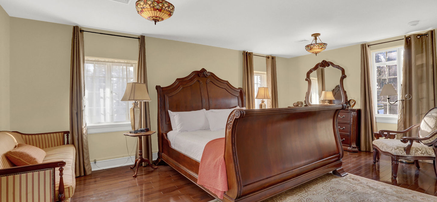 Named after the 3rd owners, The Purcells, this room is a large King suite. It is located in the back of the mansion, it is very private, and has a King bed. It also includes a sitting area and writing desk. This suite has views of the river, the "Greens" and the courtyard.